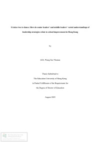 It takes two to dance : how do senior leaders’ and middle leaders’ varied understandings of leadership strategies relate to school improvement in Hong Kong /