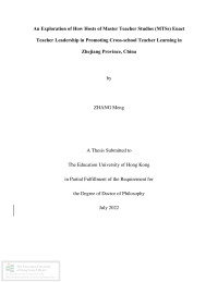An exploration of how hosts of Master Teacher Studios (MTSs) enact teacher leadership in promoting cross-school teacher learning in Zhejiang Province, China /