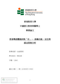 香港粵語體貌詞尾「住」﹕語義功能、定位與語法限制分析 /