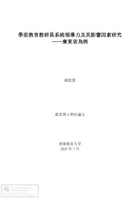 學前教育教研員系統領導力及其影響因素研究 : 廣東省為例 /