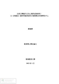 古典文學提升正向心理的成效研究:以《西遊記》運用英雄原型和沙維雅模式的教學為中心 /