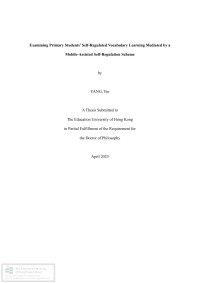 Self-regulated learning (SRL), an important component of 21st-century skills, has been extensively researched in the field of education over the past several decades, yet its application to the field of language learning has been limited. The rapid development of technology has led to the emergence of various platforms that facilitate self-regulated language learning (SRLL). However, rare comprehensive review of SRLL has been undertaken to date, making it challenging to identify research gaps and trends in the field. This thesis is a compilation of two journal publications and two submitted journal manuscripts, including a systematic review and three empirical studies, to contribute to the literature on technology-enhanced SRLL, especially in terms of self-regulated vocabulary learning (SRVL). First, the review study on published technology-enhanced SRLL studies from 2011 to 2020 highlighted three major research gaps in the current literature: (1) the role of technology, (2) research context, and (3) research methods. Several associated conclusions were drawn from this work: (1) a more systematic tool for supporting all phases of SRL in the context of language learning is needed; (2) greater focus should be placed on the research context of K–12 education and vocabulary learning; and (3) mixed research methods are needed to fully elucidate the characteristics of students’ SRVL, and study duration should be longitudinal. Following this review study, three empirical studies were conducted. The first study reported on the development of the self-regulation scheme on Vocab+ and evaluated its impact on primary students’ vocabulary learning outcomes and perceived SRVL skills, which lasted four months. Students using the self-regulation scheme on Vocab+ exhibited significantly better learning outcomes and SRVL skills than those who did not use the self-regulation scheme on the app or those who had not used the app. The second study further evaluated the effect of the mobile-assisted self-regulation scheme on primary students’ SRVL from a longitudinal perspective via latent growth modelling which lasted for seven months. The findings indicated the effect of the mobile-assisted self-regulation scheme, as students supported by the scheme exhibited a steeper increasing trend in perceived SRVL skills and vocabulary learning outcomes and had a stronger correlation between the growth rate of their SRVL skills and the growth rate of their vocabulary learning outcomes than those students without the support of the scheme. The third study investigated students’ SRVL behaviours using learning analytics and their associated vocabulary learning outcomes. The results showed the similarities and differences of students’ SRVL behaviours among three groups (clusters), adding a new dimension to the current literature. This thesis deepens the understanding of using a mobile app with the self-regulation scheme to support the entire process of primary students’ SRVL out of class and elucidates the characteristics of SRVL behaviours. This thesis also enriches the existing literature on technology-enhanced SRVL, providing researchers, language teachers, and learners with theoretical and practical insights and ultimately laying the groundwork for larger-scale implementation in more schools, especially in the post-pandemic era