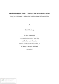 Examining the roles of teachers’ explanatory styles related to their teaching experience on students with Emotional and Behavioural Difficulties (EBD) /