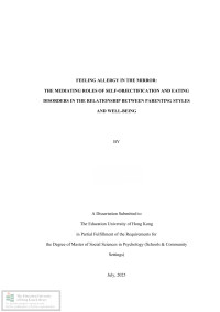 Feeling allergy in the mirror : the mediating roles of self-objectification and eating disorders in the relationship between parenting styles and well-being /