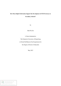 This study investigates how digital fabrication supports the development of STEM literacy among secondary school students. Employing a mixed methods approach that combines quantitative analysis with qualitative interviews, the research compares the effects of digital fabrication versus traditional manufacturing methods on five core domains of STEM literacy: STEM concepts, STEM practices, STEM applications, STEM attitudes, and STEM-related contexts.The research design employs a 2×2 factorial design, dividing 205 Hong Kong secondary students into four groups: digital fabrication collaborative, digital fabrication independent, traditional manufacturing collaborative, and traditional manufacturing independent. Each group completed identical geometric shape fabrication tasks, including creating 5cm squares and 5cm diameter circles. STEM literacy development was assessed through pre-test and post-test questionnaires, complemented by in-depth interviews with eight students to gather qualitative insights.The findings reveal that digital fabrication methods significantly outperform traditional manufacturing approaches in fostering STEM literacy development. The digital fabrication groups demonstrated significant improvement across all five STEM literacy domains, with particularly notable gains in STEM applications and STEM attitudes. In contrast, the traditional manufacturing groups showed greater improvement in STEM concepts but limited progress in other domains. The research also found no significant difference in STEM literacy development between learning modes (independent versus collaborative), suggesting that both approaches can effectively support learning. Additionally, no significant differences were observed in STEM literacy development across grade levels or gender, indicating that digital fabrication activities are effective for students of different ages and genders.The study offers important recommendations for STEM education practice, including: balancing structured guidance with student autonomy, embedding fabrication activities within authentic problem contexts, explicitly connecting fabrication activities to STEM concepts, incorporating structured reflection throughout the fabrication process, and strategically organizing collaborative learning. The findings provide an empirical foundation for educators, curriculum designers, and policymakers to effectively integrate digital fabrication technologies into STEM education