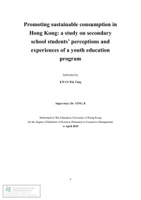 Promoting sustainable consumption in Hong Kong : a study on secondary school students' perceptions and experiences of a youth education program /