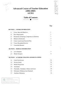 Hong Kong Institute of EducationAdvanced Course of Teacher Education, A1C011 /