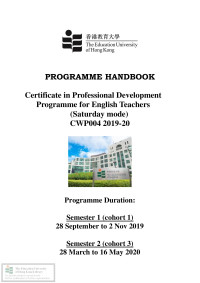 Education University of Hong KongProgramme handbook : Bachelor of education (Honours) (English language) (five-year full-time) /