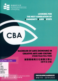 Education University of Hong Kong Faculty of Liberal Arts and Social SciencesProgramme handbook : Bachelor of arts (honours) in creative arts and culture(four-year full-time) = 創意藝術與文化榮譽文學士(四年全日制)