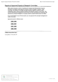 Reports of approved projects of research committee /