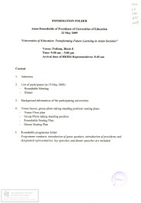 香港教育學院 賽馬會小學Asian Roundtable of Presidents of Universities of Education, 22 May 2009 : universities of education : transforming future learning in Asian societies