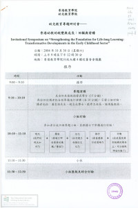 Pacific Circle Consortium Conference幼兒教育專題研討會 : 香港幼教的蛻變與成長 : 回顧與前瞻 = Invitational symposium on strengthening the foundation for life-long learning : transformative developments in the early childhood sector