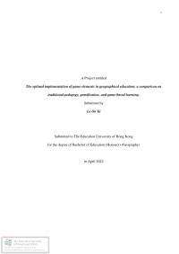 Chiu, Hoi ChingThe optimal implementation of game elements in geographical education : a comparison on traditional pedagogy, gamification, and game-based learning /