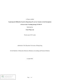 Cham, Lok HeiExploring the difficulties faced by Hong Kong pre-service teachers in the resumption of face-to-face teaching during COVID-19 /