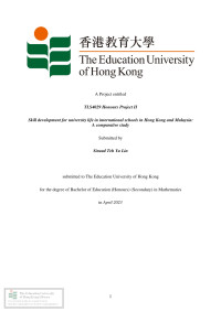 Ho, Yuen ManSkill development for university life in international schools in Hong Kong and Malaysia : a comparative study /