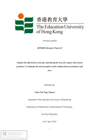 Yu, YangExplore the effectiveness of using 'maximizing the area of a region with a fixed perimeter' to eliminate the misconceptions of the relation between perimeter and area /