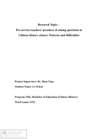 Liu, Sin YingPre-service teachers' practices of asking questions in Chinese history classes : patterns and difficulties /