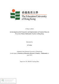 An investigation of the perspectives and implementation of variation theory by pre-service primary mathematics teachers in Hong Kong /