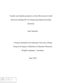Li, YuhanTeachers and students perspective on the effectiveness of Small Classroom Teaching (SCT) in Hong Kong English secondary classroom /