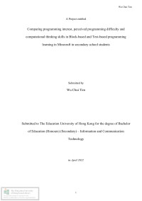 Attiyyah, ZainebComparing programming interest, perceived programming difficulty and computational thinking skills in block-based and text-based programming learning in Minecraft in secondary school students /
