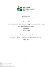 Cheung, Tsz ChingEffect of student's SES (Socio-Economic Status) backgrounds on ethnic minority secondary school students' academic achievement /