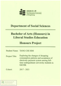 So, Ka YeeExploring the changes of shopping consumption patterns and acceptance of electronic payment system among fulltime undergraduate university students in EdUHK /
