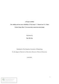 Chow, Chung KiThe validity and test-retest reliability of "My Jump 2", "HomeCourt" & "Takei Vertical Jump Meter" for measuring countermovement jump /