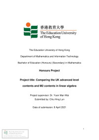 Tang, Lai YingComparing the UK advanced level contents and M2 contents in linear algebra /