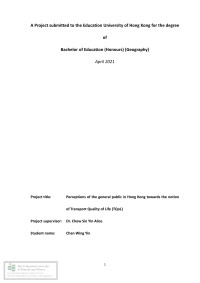 Chau, Cheuk Lam EstiPerceptions of the general public in Hong Kong towards the notion of Transport Quality of Life (TQoL) /