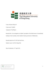 Chiu, Hing LunAn investigation on students' perception of the effectiveness of reward-based learning in local secondary school students' learning motivation in Mathematics /