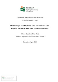 Tong, Ka ChunThe challenges faced by South Asian and Southeast Asian teachers teaching in Hong Kong educational institutes /