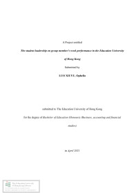 Leung, Hok TungThe student leadership on group member's work performance in the Education University of Hong Kong /