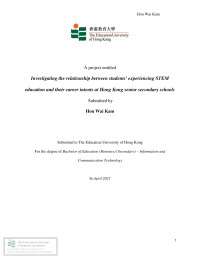 Lee, Ka WunInvestigating the relationship between students' experiencing STEM education and their career intents at Hong Kong senior secondary schools /