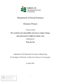 Hon, Wai KamThe sensitivity and vulnerability of tourists to climate change : amusement parks in different climate zones /