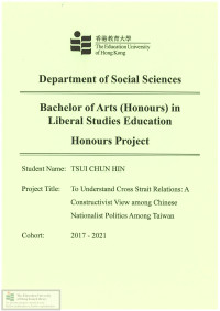 Wong, Ka YanTo understand cross strait relations : a constructivist view among Chinese nationalist politics among Taiwan /