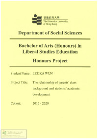 Cheung, Cho ShanThe relationship of parents' class background and students' academic development /