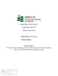 Gong, TianyuProviding choices : enhancing primary students' learning motivation in Hong Kong ESL classroom through autonomy-supportive teaching /