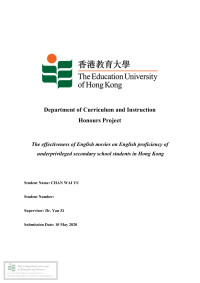Yeung, Ka LongThe effectiveness of English movies on English proficiency of underprivileged secondary school students in Hong Kong /