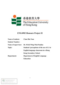 Chan Wai YuStudents' perceptions of the use of L1 in English language classroom in a Hong Kong secondary school /