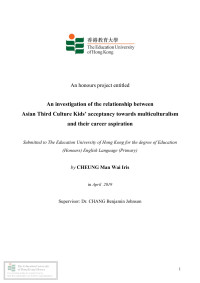 Tang, Chun-tungAn investigation of the relationship between Asian third culture kids' acceptancy towards multiculturalism and their career aspiration /