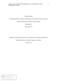 Wong, Po-kingThe mediating effect of cognitive interference on the relation between university social environment and academic procrastination /