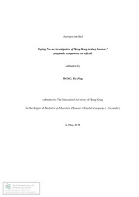 Wong, Ming ChiSaying no : an investigation of Hong Kong tertiary learners' pragmatic competency on refusal /