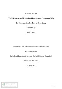 Lum, Wing ChiThe effectiveness of professional development programs (PDP) for kindergarten teachers in Hong Kong /