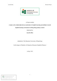 Kong, Lai HanA study on the relationship between motivation in English learning and attitudes towards English learning environment in Hong Kong primary schools /