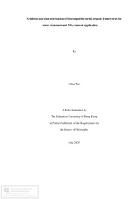 Ho, Ka Man CarmanSynthesis and characterisation of biocompatible metal-organic frameworks for water treatment and NOᵪ removal application /