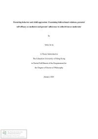 Rozados Souza, Majely CarlaParenting behavior and child aggression : examining bidirectional relations, parental self-efficacy as mediator and parents' adherence to collectivism as moderator /
