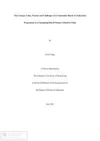 Tao, SisiThe concept, value, practice and challenges of a community-based art education programme in a Guangdong Rural primary school in China /