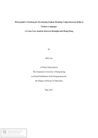 Pang, Siu ChuenMetacognitive teaching for developing student reading comprehension skills in Chinese language : a cross-case analysis between shanghai and Hong Kong /
