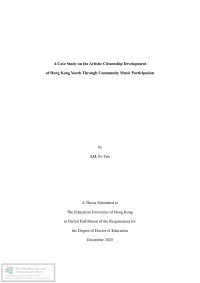 Wong, Man Wai BeatriceA case study on the artistic citizenship development of Hong Kong youth through community music participation /