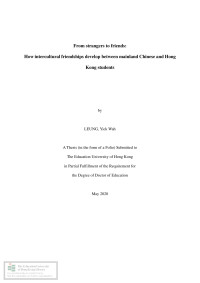 Leung, Christee Lai ChingFrom strangers to friends : how intercultural friendships develop between mainland Chinese and Hong Kong students /